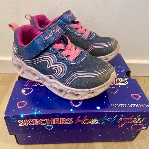 Yhdellä käytössä olleet Skechers lilat vilkkukengät. Uutena ostettu. Toisesta kengässä vilkut sammuneet, kärjessä kulumaa, muutoin ehjät/toimivat. Sisämitta 14cm.