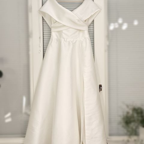 Merkkinä Lillian West, mallin numero 66077. Puku on A-linjainen ja siinä on laahukseton sifonkihelma kirjailulla yläosalla. Väri ivory. Koko usa 8 eli vastaa noin 38/40. Itse olen 163 cm pitkä ja hääpäivänä oli 5 cm korot. Käytetty pesulassa. Hinta 500€ (ovh 1600€).