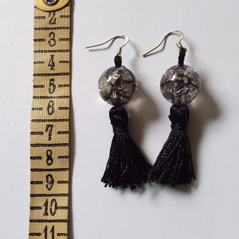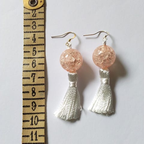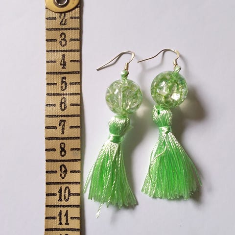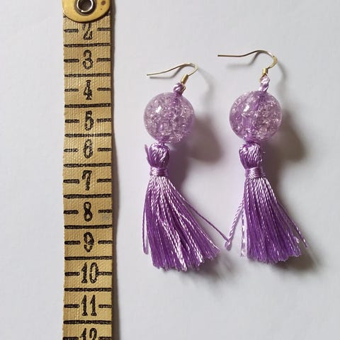 Korvakorut , akryyli säröhelmi ja kangas tupsu.