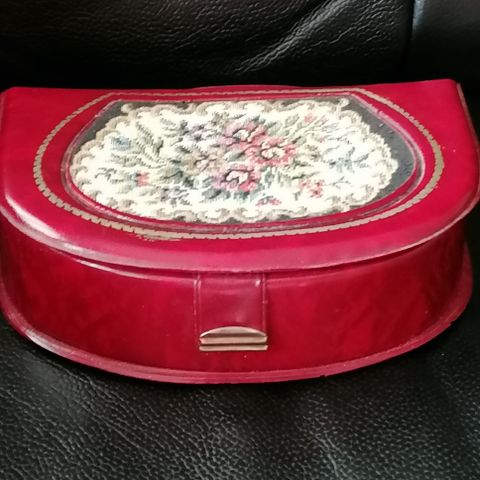 Myydään kaunis posliininen korurasia, jossa ruusukuvio ja kansi. Sopii esimerkiksi korujen säilytykseen tai kodin somistukseen. Mitat n 15 x 11 x 9 cm.