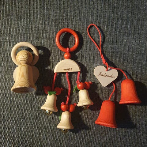 Aarikan jouluinen seinäkoriste. Koristeen kokonaiskorkeus n. 21 cm ja leveys 9 cm.