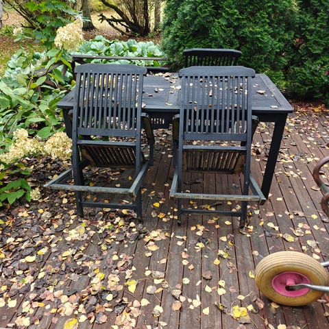 Puiset Keinutuoli ja pöytä terassille tai partsille. Yht 50