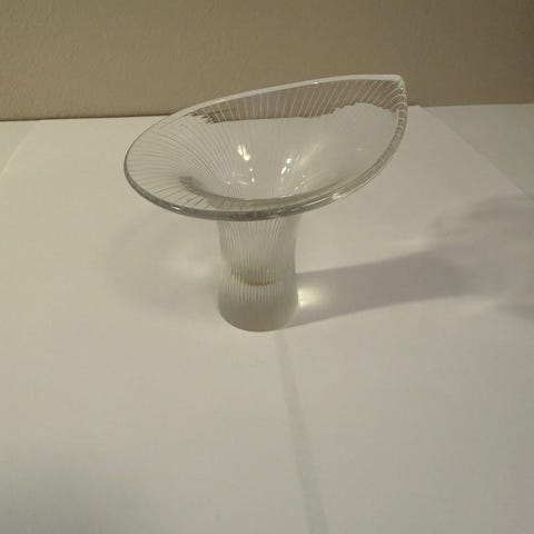 Myydään Tapio Wirkkalan Iittalalle suunnittelema priima kuntoinen 2001 valmistettu Kantarelli maljakko. Pohjassa on signeeraus Tapio Wirkkala Iittala 2001. Maljakko on ostostaan lähtien seisonut kirjahyllyn koristeena eikä sitä ole koskaan käytetty kukkamaljakkona.