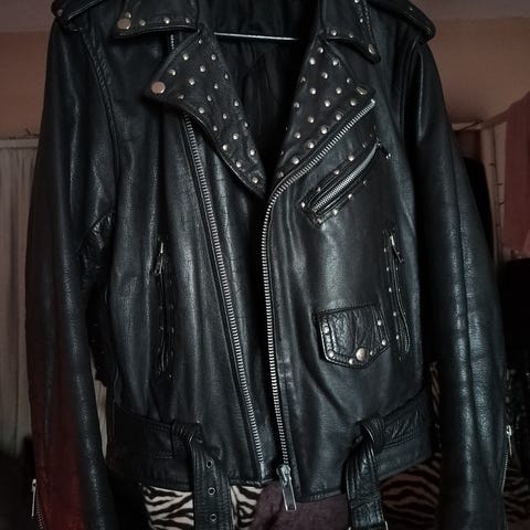 Kuvan biker mallinen nahkatakki myytävänä. Olen takin omistanut 90-luvun loppupäästä. Takki on nahaltaan todella hyvässä kunnossa. Taskut kaikki ehjiiä. Ainoa miinus on tupakalla palanut reikä vuoressa ja yksi rintalerpakkeen nepparinappi lähtenyt irti. Molemmat nepparin puoliskot tallessa takissa kiinni.