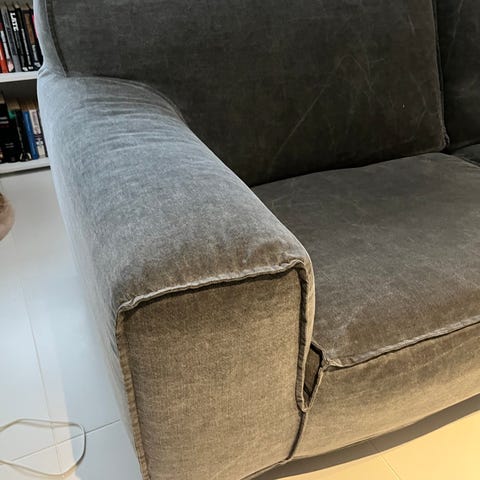 Sohva todella hyvä istua. Käsinojat ja tyynyt kiinteät.
