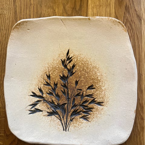 Aimo Nietosvuoren tekemä upea maisemataulu. Koko 18x13 cm. Jie Gantoffan tehdas sijaitsi Ruotsissa Helsingborgissa v. 1942-1992. Aimo Nietosvuori työskenteli siellä vuodesta 1967 lähtien loppuun saakka.