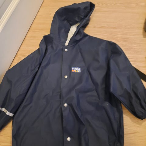 Myydään sadetakki kokoa 116cm, merkki Rukka. Käytetty kunto kuten kuvasta näkyy, esim tussin nimikointi takin sisäpuolella näkyy ulkopuolelle. Ehjä kuitenkin ja ajaa asiansa.