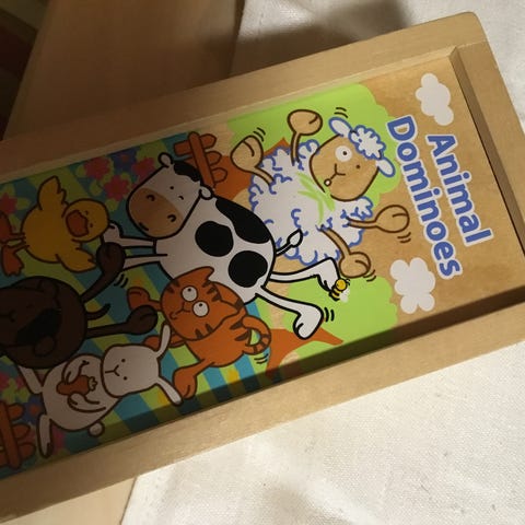 Eläinaiheinen domino-peli. Puisia pelinappuloita 28kpl.