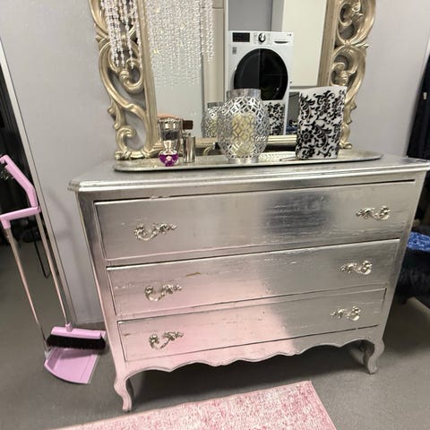 Kuvanmukainen lipasto tarjolla keittiöremontin tehtyä tilan liian pieneksi hänelle.