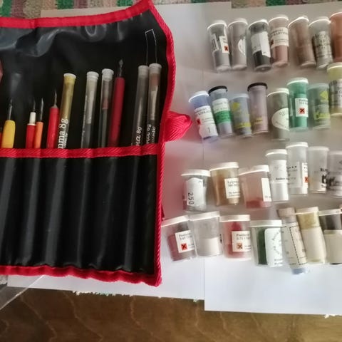 N.700 purkkia pulvereita ja öljyjä. Osa täysiä osa vajaita. Lisäksi useampi laatikollinen valkoposliinia.