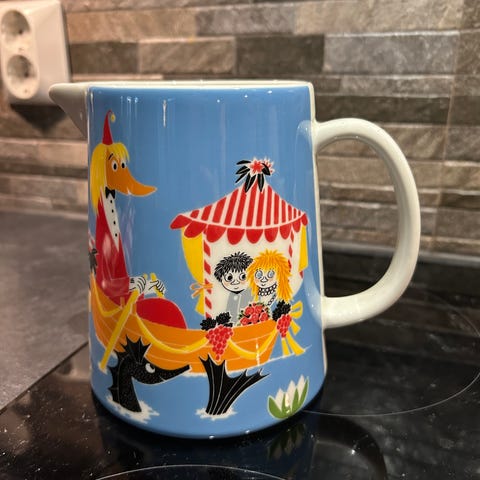 Tarrallinen, vitriinissä säilytetty Muumi Ystävyys-sarjan kaadin 1 l.