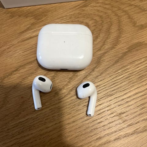 Noin vuoden vanhat AirPods (sukupolvi 3/gen 3) kuulokkeet. Ei ole tullut hirveästi käytettyä, kun tykkään mielummin sangallisista. Akku kestää vielä hyvin.