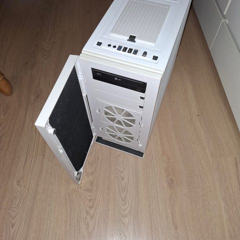 Lenovo Legion pelitietokone, jossa on musta kotelo ja RGB-valaistus. Laite soveltuu pelaamiseen ja vaativiin tietokoneen käyttötarkoituksiin. Tässä mallissa on useita liitäntöjä takapaneelissa, mukaan lukien USB-portit ja verkkoliitäntä. Pelit pyörii huikeasti hintaansa nähden.