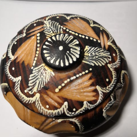 Siisti ja ehjä, mutta sisäpohjassa ollut liimattuna styroksipala, jonka jäljet varmaan saa jollain poistettua.