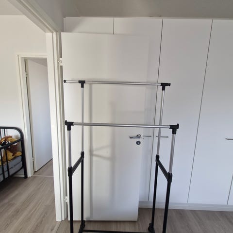 Myydään hyväkuntoinen Säädettävä teleskooppikuivausteline on kestävä ja siisti kuivausteline kylpyhuoneeseen, kodinhoitohuoneeseen tai mihin tahansa kapeaan tilaan, jonka leveys on enintään 235 cm. Telineessä on oma kätevä kiinnitysmekanismi, joka ei vaadi poraamista, reikiä tai muuta kiinteää asennusta. Hyvä valinta esimerkiksi vuokra-asuntoon, jonka seiniin ei haluta tehdä pysyviä jälkiä. Teräsrunkoisessa, valkoiseksi maalatussa kuivaustelineessä on kuusi ripustusnarua.