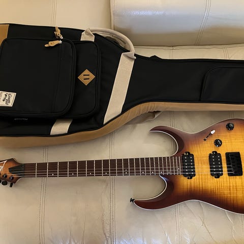 Kaularauta kiristetty, kaula nauhoineen huollettu. Virityskoneisto kiristetty ja öljytty. Uudet Ernie Ball-kielet (10-46). Testattu bänditreeneissä. Hyvä, soiva keppi.