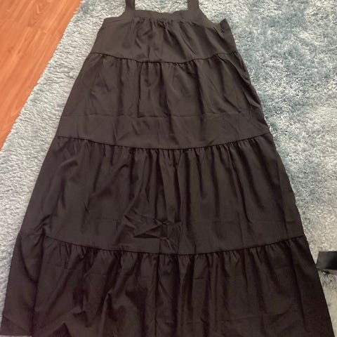 Naisten ruskea/ musta pitkä mekko, kokoa XL, hyvä kuntoinen ja sen voi noutaa Ylämyllyltä hintaan 15€.