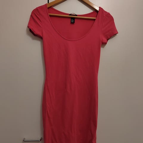 Pinkki lyhythihainen mekko. Kiva pitää vaikka vyön kanssa jos haluaa tyköistuvamman.
