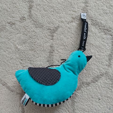 Ihana pehmoinen whisbear kohinalaite. Ulokkeissa magneetit, joista helppo kiinnittää pinnasängyn laitaan tai vaunujen aisaan. Säädettävä äänenvoimakkuus. Takana tarrakiinnitys, josta koneiston voi poistaa. Karhu konepestävä. Takana oleva tarra ei enää uudenveroinen, muuten ei moitteita kunnossa.