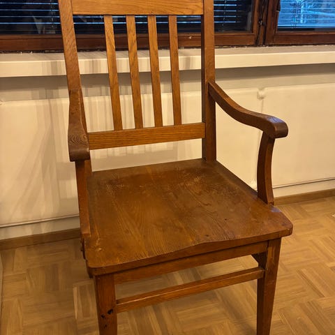 Vanha Billnäs tamminen tuoli myytävänä. Runko tukeva. Liitoksia uudelleen liimattu aikanaan. Kyltti tallessa ja leima pohjassa. Ajan tuomia jälkiä puussa. Yleiskunto ikäisekseen hyvä. Istuinkorkeus 45 cm.