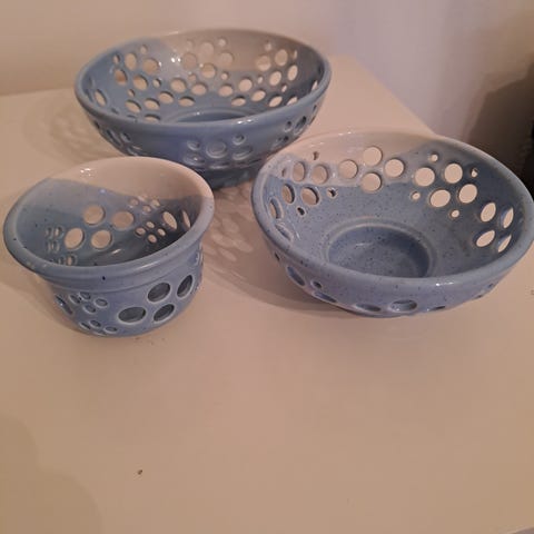 Myytävänä 2 romanttista Käsintekijöiden myymälästä aikanaan hankittua lyhtyä esim tuikkukynttilälle. Kipot ovat ns. köyhän miehen hopeaa.