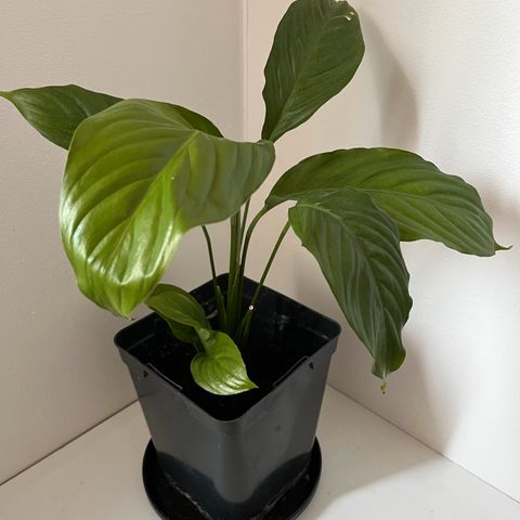 Aglaonema kasvi, jossa on vihreät ja valkoiset lehtikuvioinnit. Kasvi on istutettu mustaan altakasteluruukkuun ja soveltuu sisätiloihin koristekasviksi. Kasvi kasvaa upeasti ja tekee uusia alkuja. Kasvin pituus ruukun kanssa 55cm.