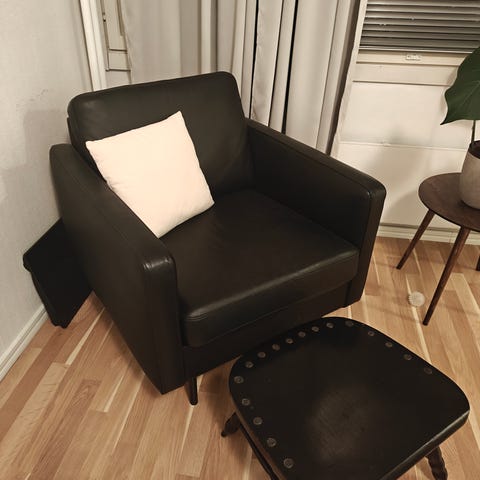 Mukava pieniin tiloihin sopiva nojatuoli.