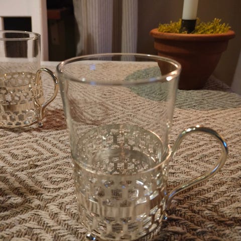 Upeat glögilasit, joissa irrotettava muovinen kahvaosa.