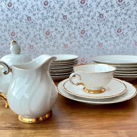 Arabia Kahvikuppi ja Lautanen Sinivihreä Kuvio