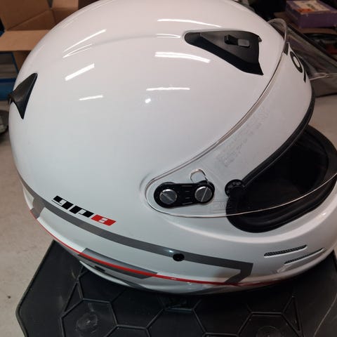 Hyväkuntoinen OMP kypärä ja hanskat, kiristyshihnan nappi irronnut.kypärä koko M. Hanskat koko L. Pelkkä nouto.