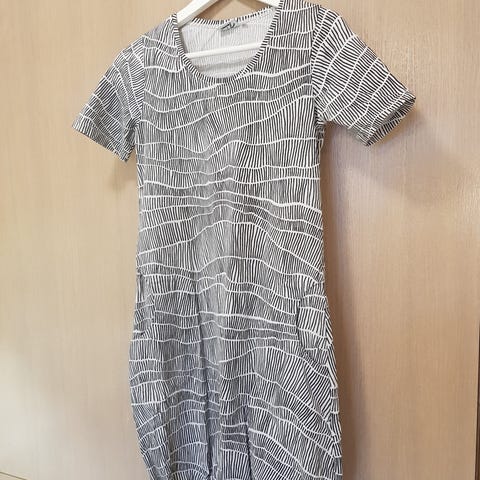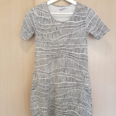 Taimin s koon lyhythihainen tunika, alareunassa ohut kuminauha. Pienet taskut reunoissa. 5e, nouto.