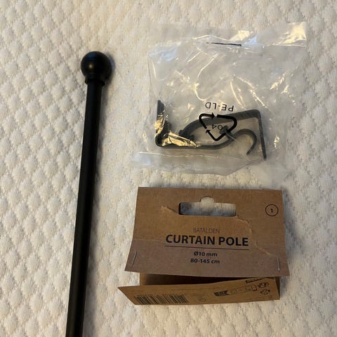 Kaksi paria verhokannakkeita + kaksi paritonta vaikka varalle. Kuvissa näkyvät ruuvit ym. tulevat mukaan kauppaan. Yhteishinta, kaikki samalle.