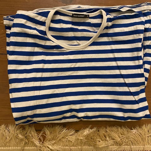Marimekko T-paita XS koko, mustavalkoinen raidallinen kuosi. Istuu hyvin xs-s.