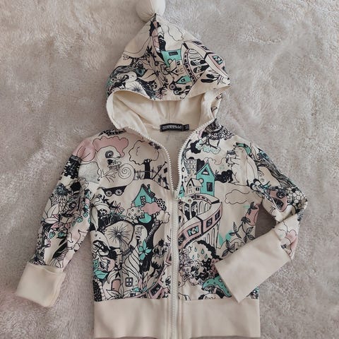 Kirkkaan vaaleansininen (hieman jopa mintunvihreään taittuva) haalari luomupuuvillaa. Ollut vähällä käytöllä, ei erottuvia kulumia. Laadukasta, jämäkkää mutta pehmeää college-kangasta. Suomalainen Aarre kids -merkki, Made in Portugal.