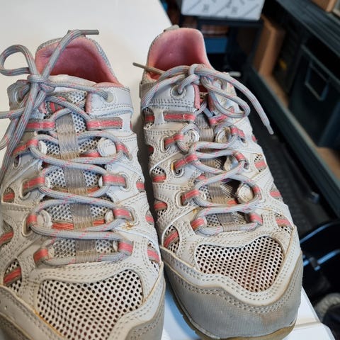 Käytetty jonkun verran, pohjat hieman kuluneet. Ulkoisesti hyvässä kunnossa, on käytetty kesällä lenkkariputsaajalla (palvelu maksoi 25 euroa). Putsauksen jälkeen käytetty vain pari kertaa.