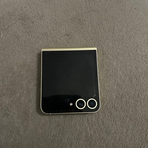 Samsung Galaxy Z -sarja taittuvanäyttöinen älypuhelin, jossa on kaksiosainen taittuva muotoilu. Puhelimessa on kaksi näyttöä, takakamerat ja kompakti koko taitettuna. Väri vaaleanpunainen. Soveltuu mobiilikäyttöön ja monipuoliseen älypuhelinviestintään.