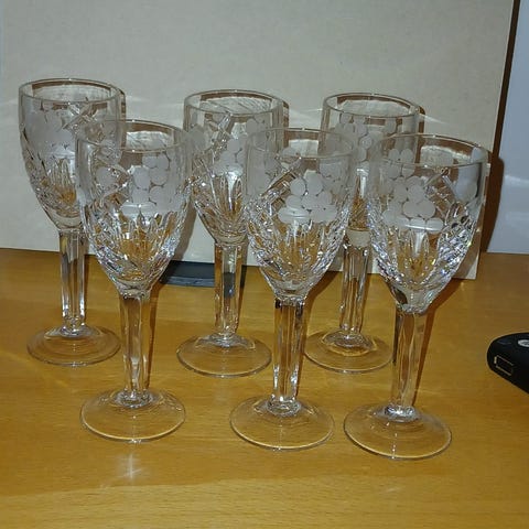 Myydään, 6kpl/setti vanhoja kristalliviinilaseja
