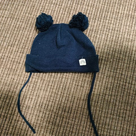 Lindex Baby sinapinkeltainen vauvan pipo, koko 44/46. Myssyssä on tupsut ja nauhat, jotka helpottavat kiinnitystä. Hyvässä kunnossa.