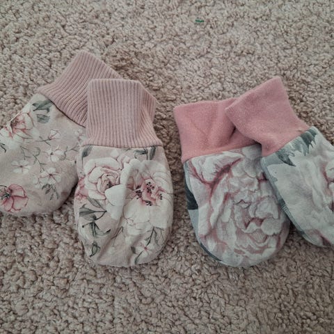 Vauvan tumput/lapaset merinovillasta. Uudenveroisessa kunnossa, ei montaa kertaa käytetty. Lapasissa ei peukaloa erikseen.