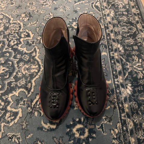 Minna Parikka Saappaat mustaa nahkaa, koko 38. Nauhalliset saappaat, joissa on korotettu kumipohja ja korostetut yksityiskohdat. Sopivat käytettäväksi erilaisissa sääolosuhteissa ja asusteena arkeen.