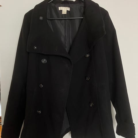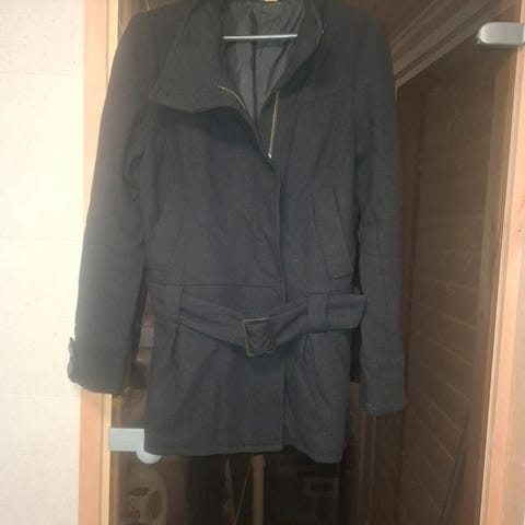 Uusi kevyt tumman sininen taskullinen, vyöllinen "villa"kangastakki kevääseen ja syksyyn ja jopa talven pikku pakkasille. Jos tykkää voi pitää pelkällä vyöllä kiinni.