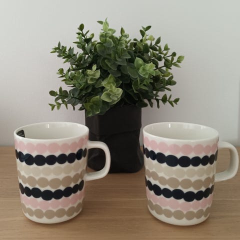 Myydään neljä Marimekon Siirtolapuutarha -mukia. Mukit korvattomia. Hyvässä kunnossa, osaa mukeista ei ole koskaan käytetty. Myydään kaikki yhdessä.