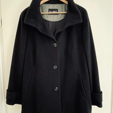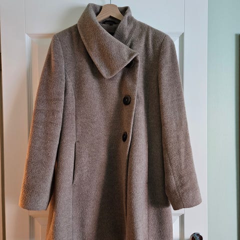 Hyväkuntoinen ja siisti takki kokoa 40. 22% villaa, 12% mohair, 12% alpaka, vuori: 100% acetatia. Takin pituus 70 cm, Kainalo-kainalo 52 cm. Etupuolella on kaksi taskua, selässä on halkio.