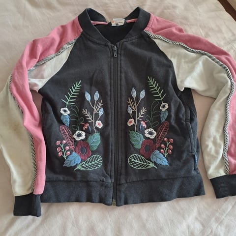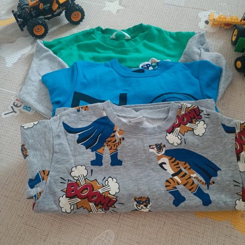 Settinä tiikerikuvionen H&M collegepaita 122-128 cm ja Lindex collegehousut säädettävällä vyötäröllä 128 cm. Housut uudet, paitaa käytetty