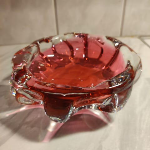 Vintage boheemi tsekkiläinen kirkkaan kristallin käsinhiottu tarjoilukulho. Moitittavaa on ja kuvissa näkyy viat keskellä sisällä ihme jälki lasin sisällä. Reunasta 2kohtaa pieni pala pois. Painava n.24cm korkee