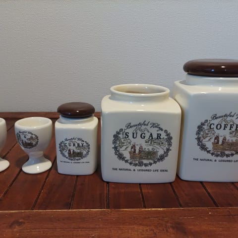 Huomioitavaa: Isommassa purkissa on pieni naarmu etupuolella, kuten kuvassa näkyy. Tämä on huomioitu hinnassa. Muuten purkit ovat hyvässä kunnossa.