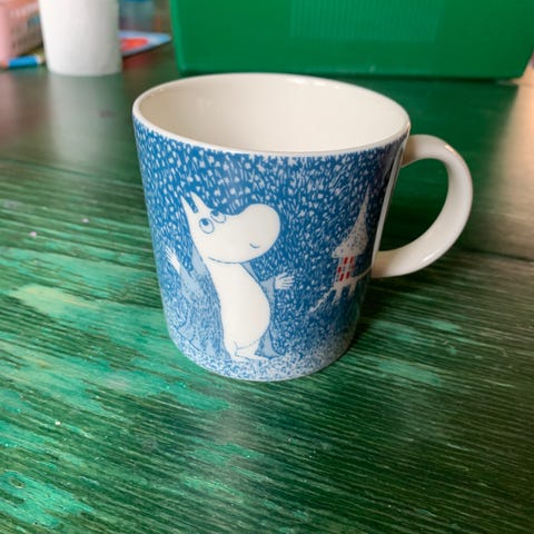 Muumimuki Hento lumisade. Vuoden 2018 talvisesonkimuki. Siisti kunto.
