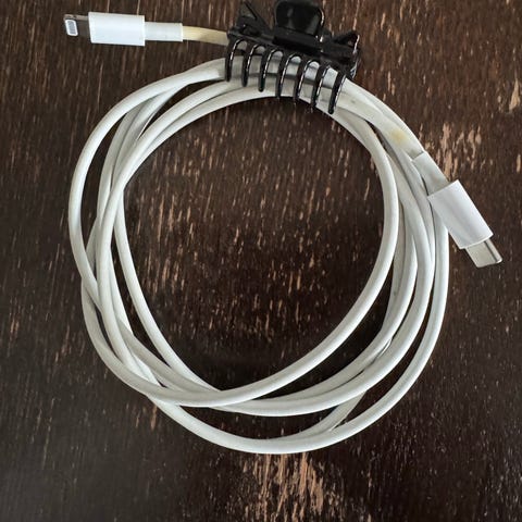 Myyn kaksi kappaletta Applen Lightning USB-C-latauskaapeleita , huomioi yhdistys laitteeseen , pituus 1 m , väri valkoinen .