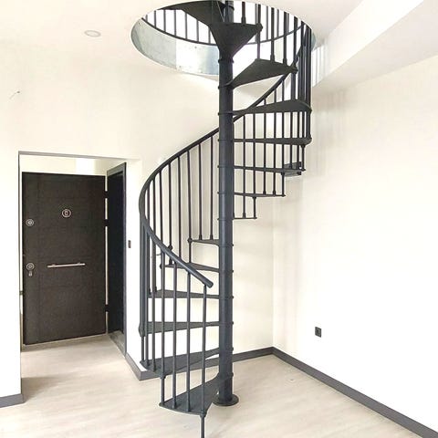 Uuden vertaiset metalliset kierreportaat, aidatun alapään halkasija noin 440cm.