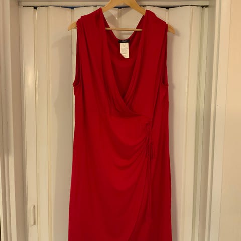 Kaunis koristelu pääntiessä, pienet halkiot helman sivuilla. Materiaali polyesteri.